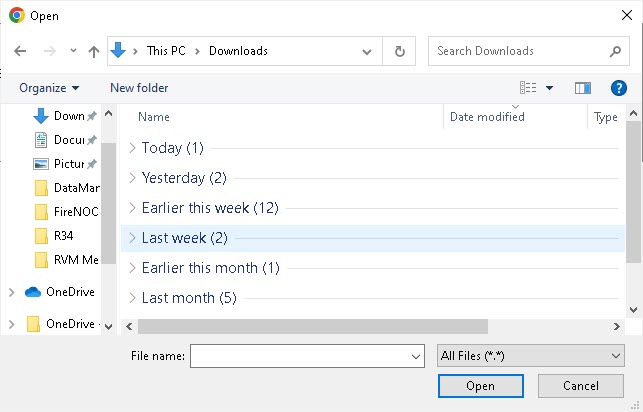 Locate and select the MasterDataImportTemplate Excel file containing the master data you want to import.