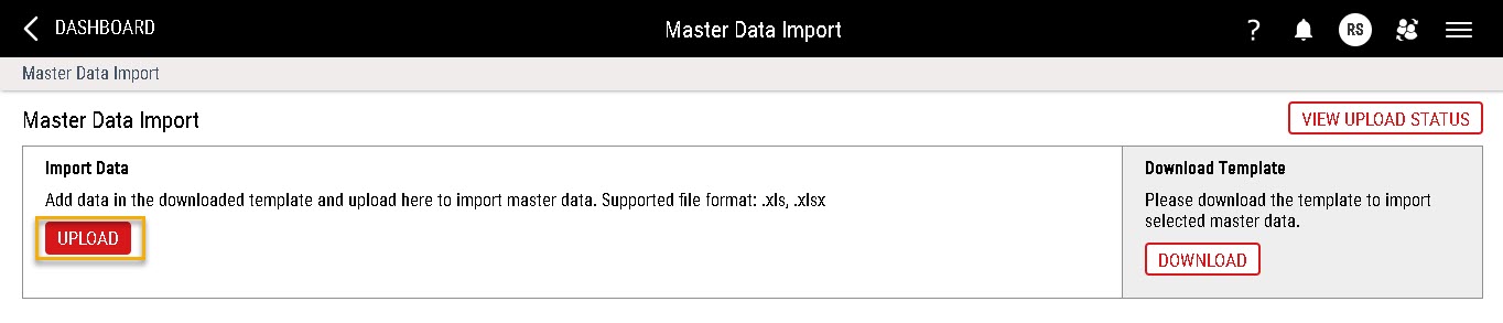 For more information, see Downloading Master Data Import Template and Master Data Import Template.