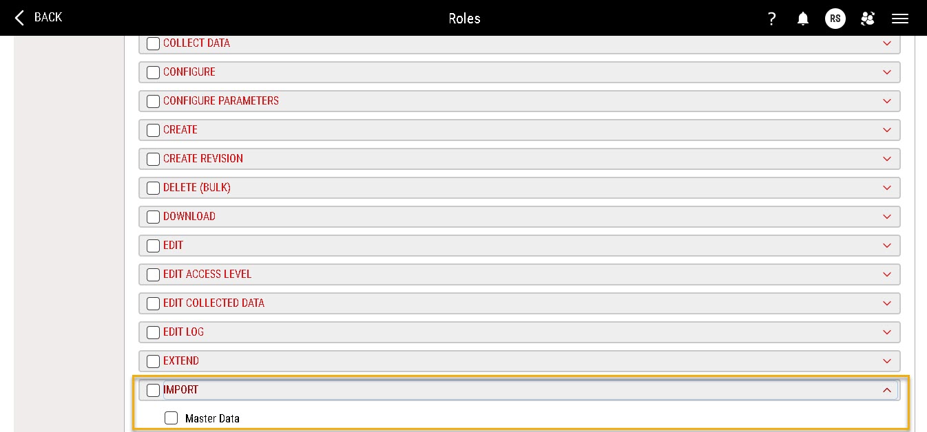 The same permissions can be configured by selecting/deselecting the Import | Master Data option under Action-Oriented Alignment.