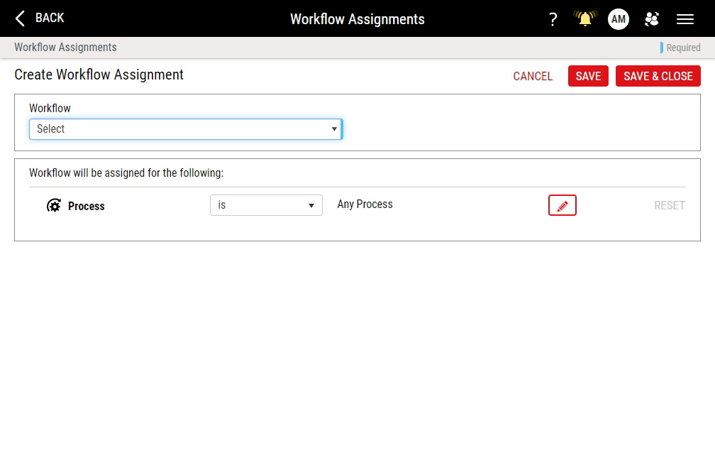 To assign the workflow to one or more processes, do the following: - To include the process, select is.