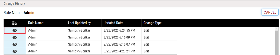 Using this procedure, you can examine changes made to the role(s) data. You can track, maintain, and display the changes made to the role's data within security module and also through modules indirectly affecting user details in Enact.