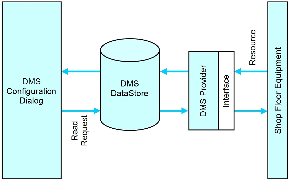 In the DMS Browser, you can invoke a read of all items in a provider, causing the provider to send a Read-Request to the connected hardware. The hardware responds with current item data, which the provider publishes to the DMS DataStore.